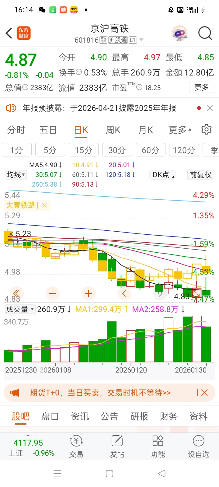 $京沪高铁(SH601816)$ 这走势,连大秦都不如