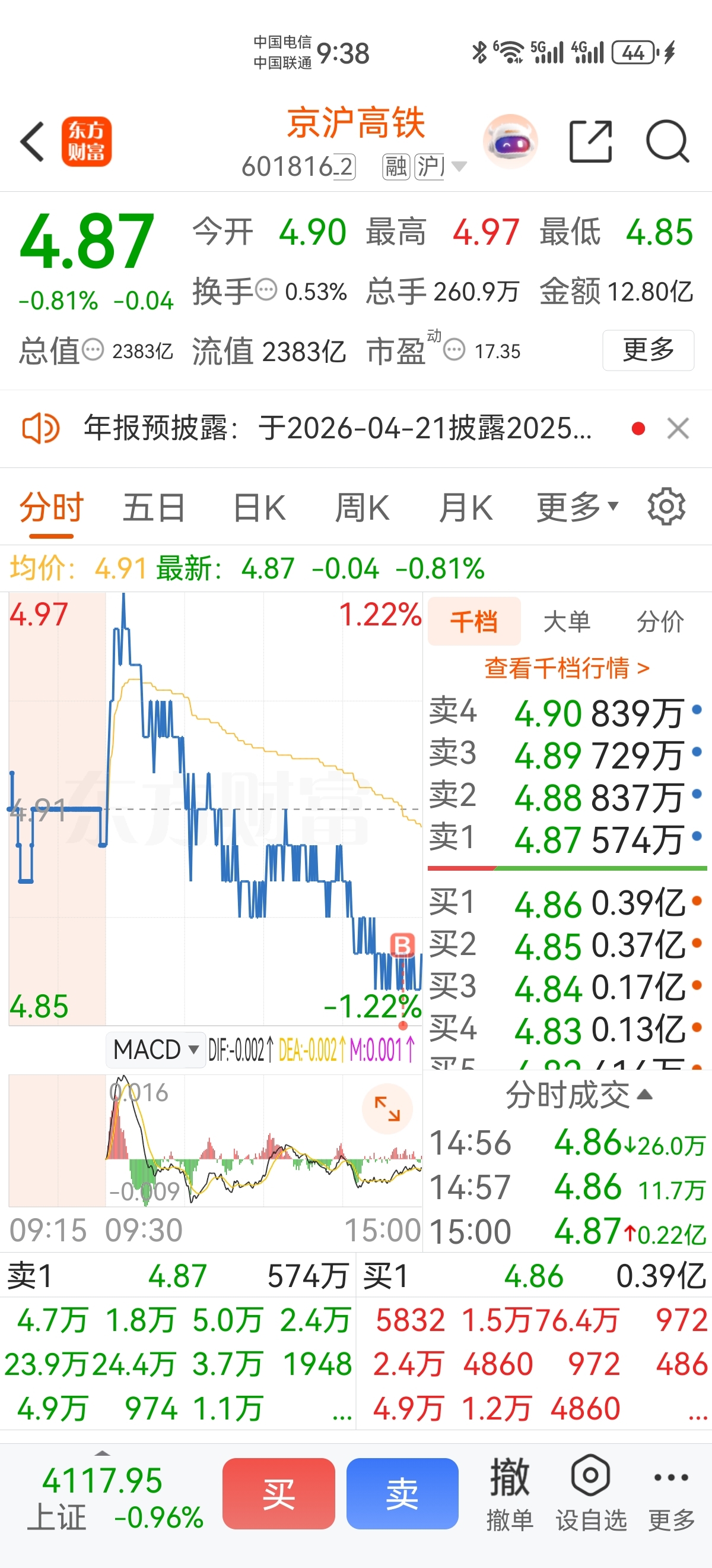 $京沪高铁(SH601816)$ 玛德,重仓的这个烂票亏麻了