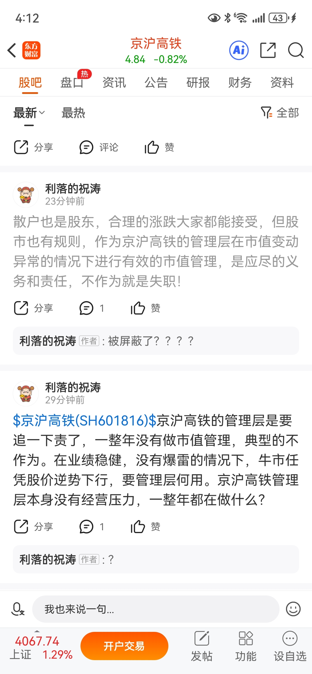 温馨提示: 1.根据《证券法》规定,禁止编造、传播虚假信息或者误导性信息,扰乱证券市场;2.用户在本社区发表的所有资料、言论等仅代表个人观点,与本网站立场无关,不对您构成任何投资建议。用户应基于自己的独立判断,自行决定证券投资并承担相应风险。《东方财富社区管理规定》