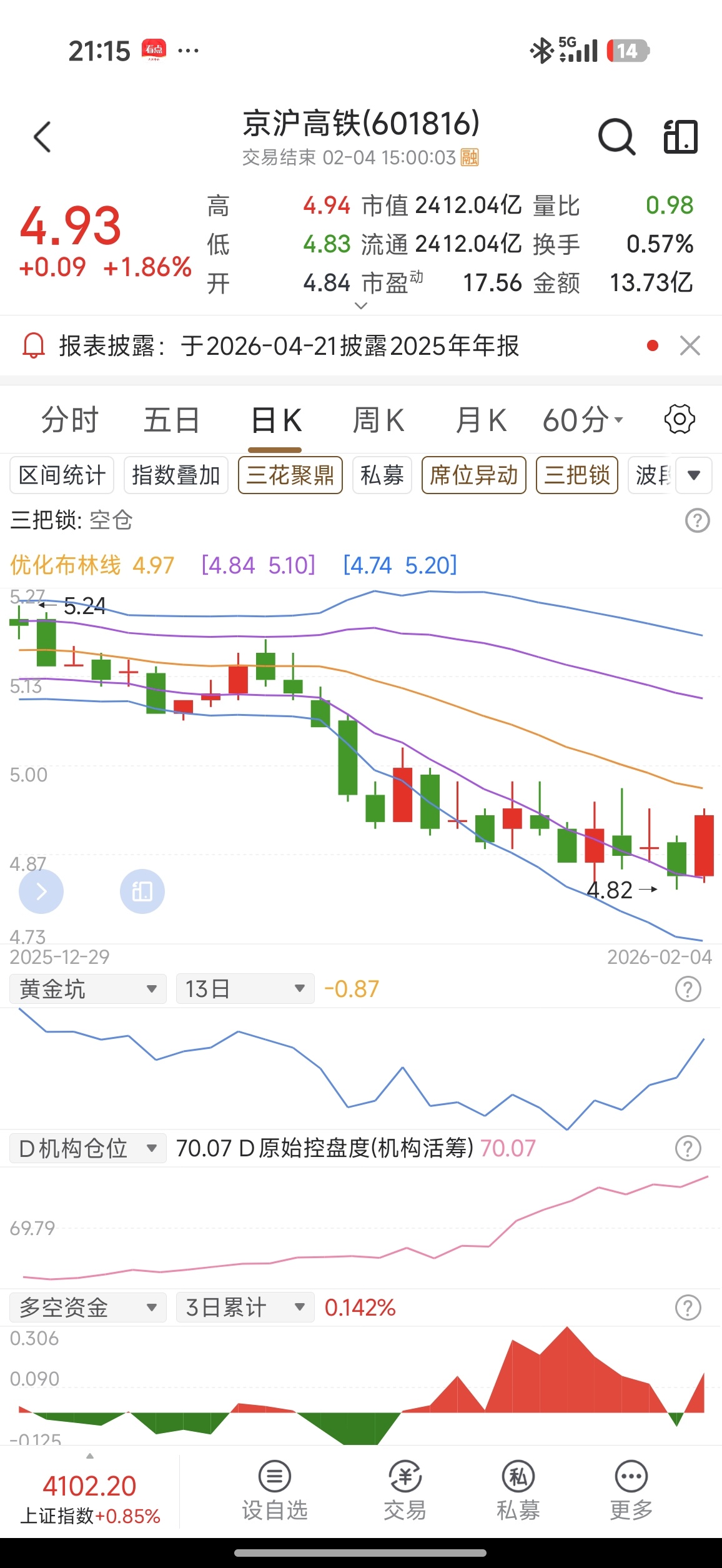 $京沪高铁(SH601816)$ 前几天我在滨江集团10元上下做T赚了几个点,但是在我最后一次做T的时候就做丢了,20多个点丢了