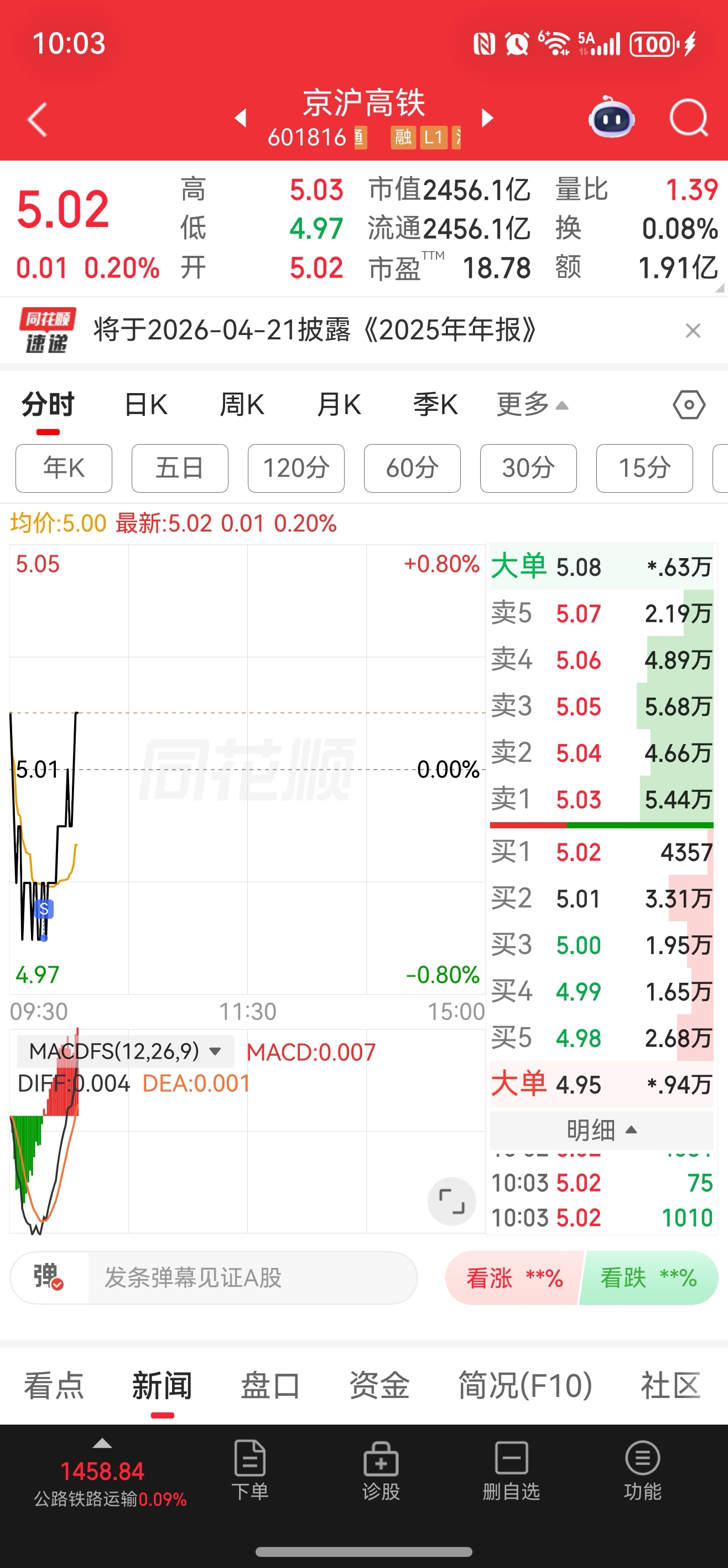 $京沪高铁(SH601816)$ 我一割肉你就涨,你是专门盯着我吗