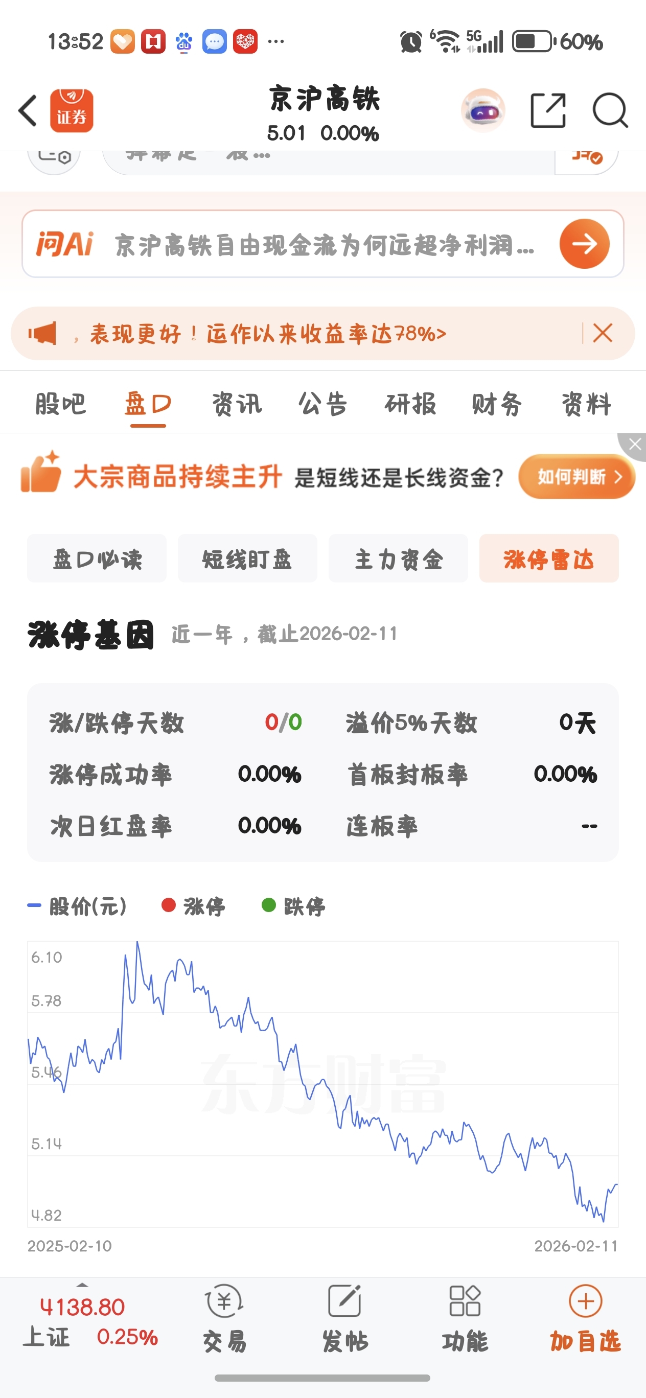 $京沪高铁(SH601816)$ 就没涨停过,有什么拿头