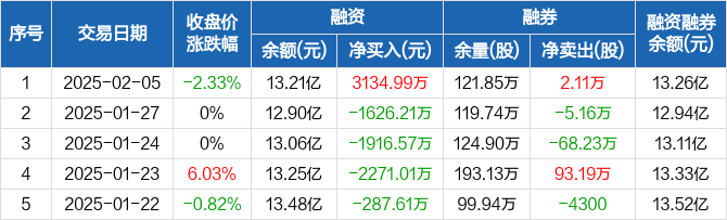 光大银行:融资净买入3134.99万元,融资余额13.21亿元(02-05)