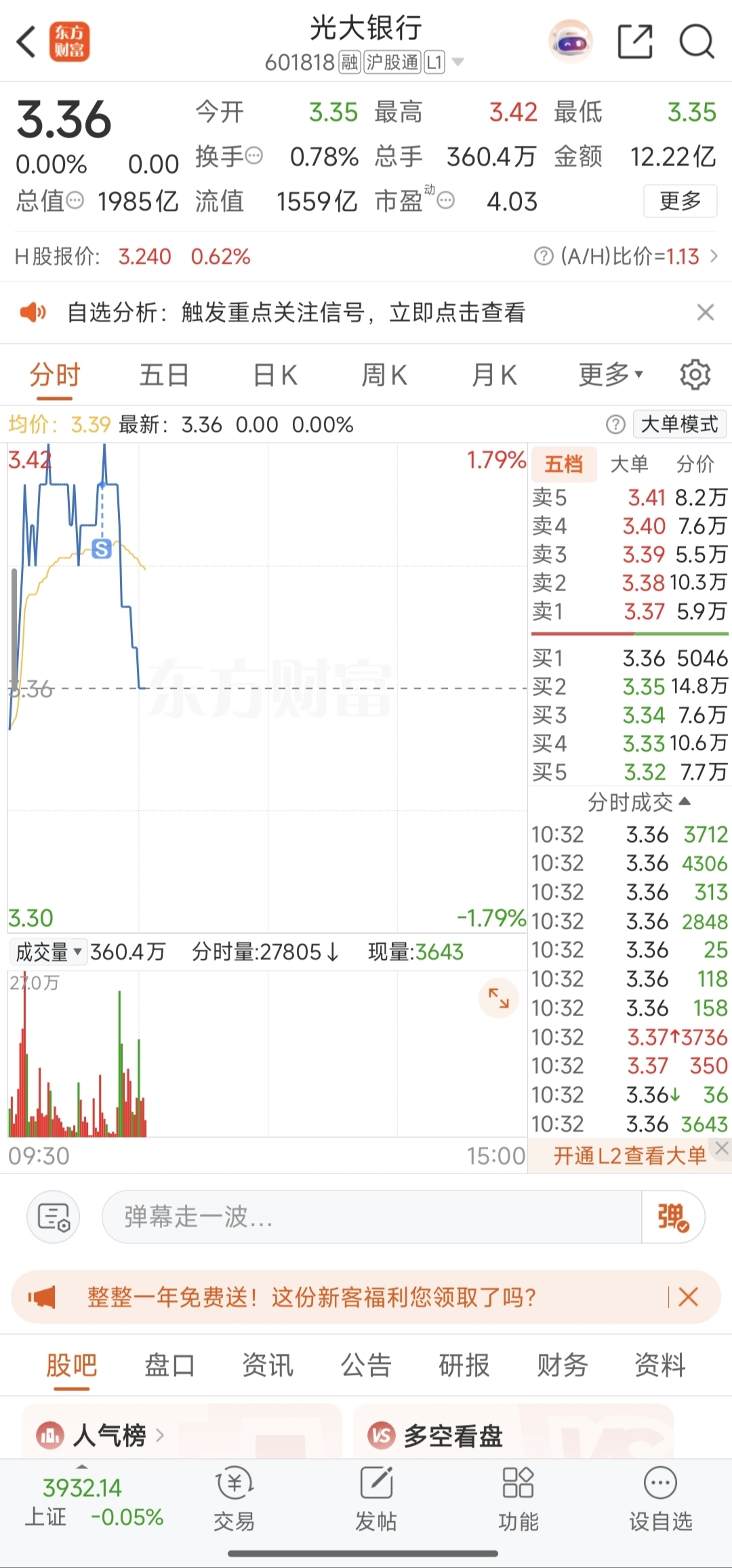 $光大银行(SH601818)$ 还好跑的快,等3.32再接回来