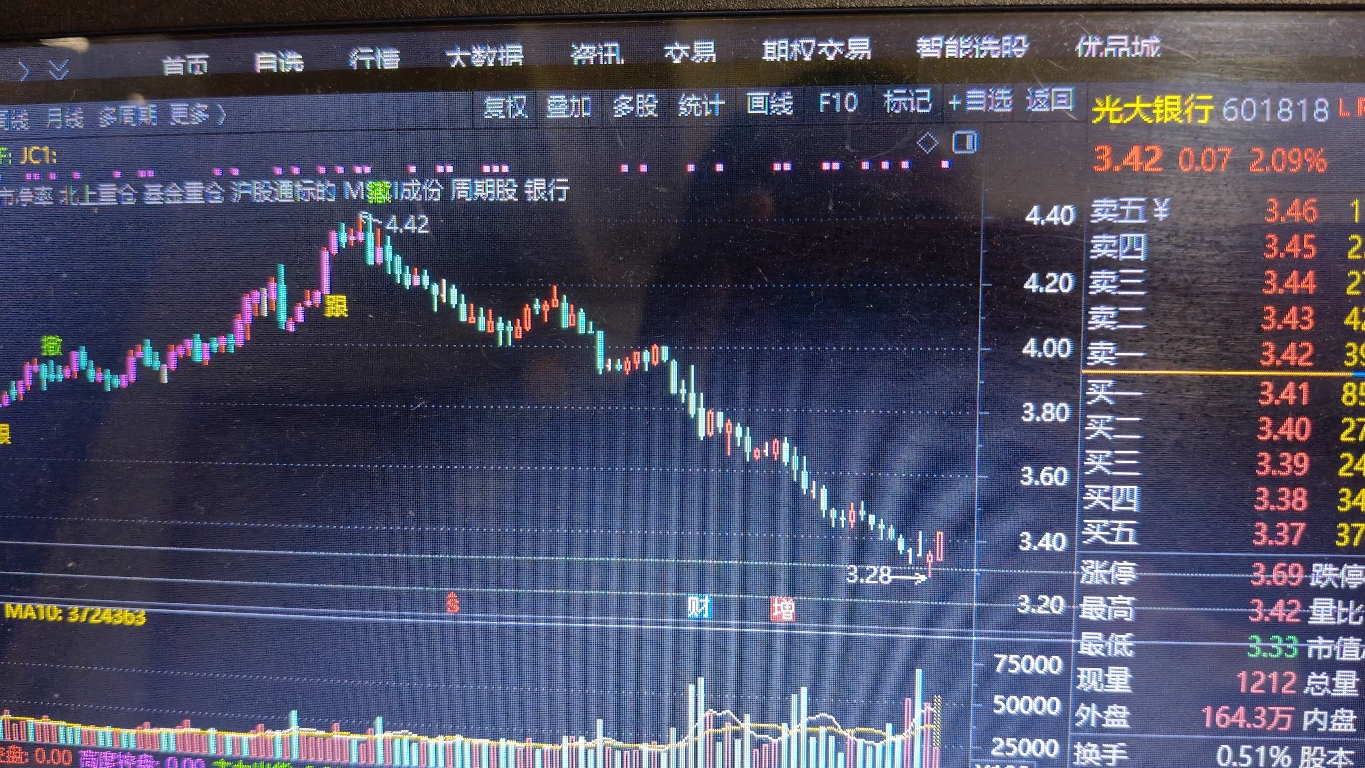 $光大银行(SH601818)$ 冲击4000点不确定因素很多,包括很多落袋为安。外围的因素。机构的资金回到银行去避险。毕竟跌了很长的时间。光大银行怎么看?#炒股日记# #强势机会# #复盘记录# 估计也就是3块6最多。这是短线反弹的一个节奏。