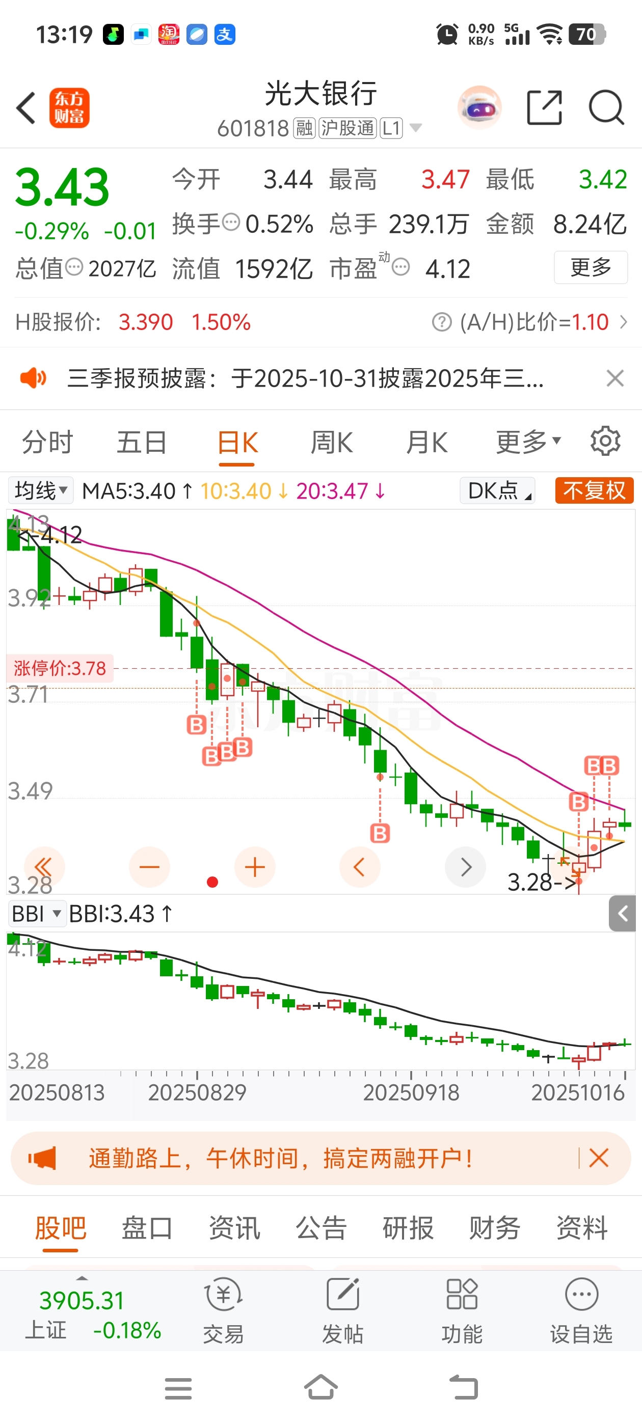 $光大银行(SH601818)$ 五年定投光大,一卖一股