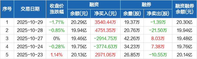 光大银行:融资净买入3540.44万元,融资余额20.29亿元(10-29)