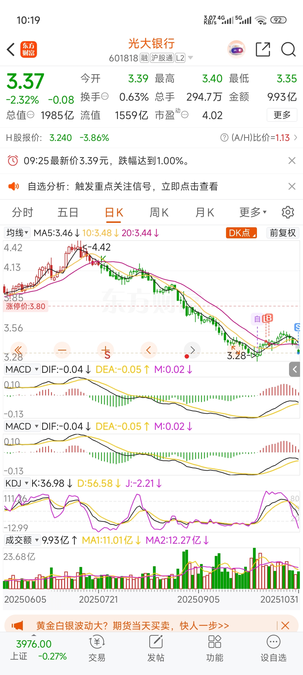 $光大银行(SH601818)$  我这个月股票赔钱就是所有的股票我都是这样买卖的,百分百赚钱的,让我搞成了百分百赔钱