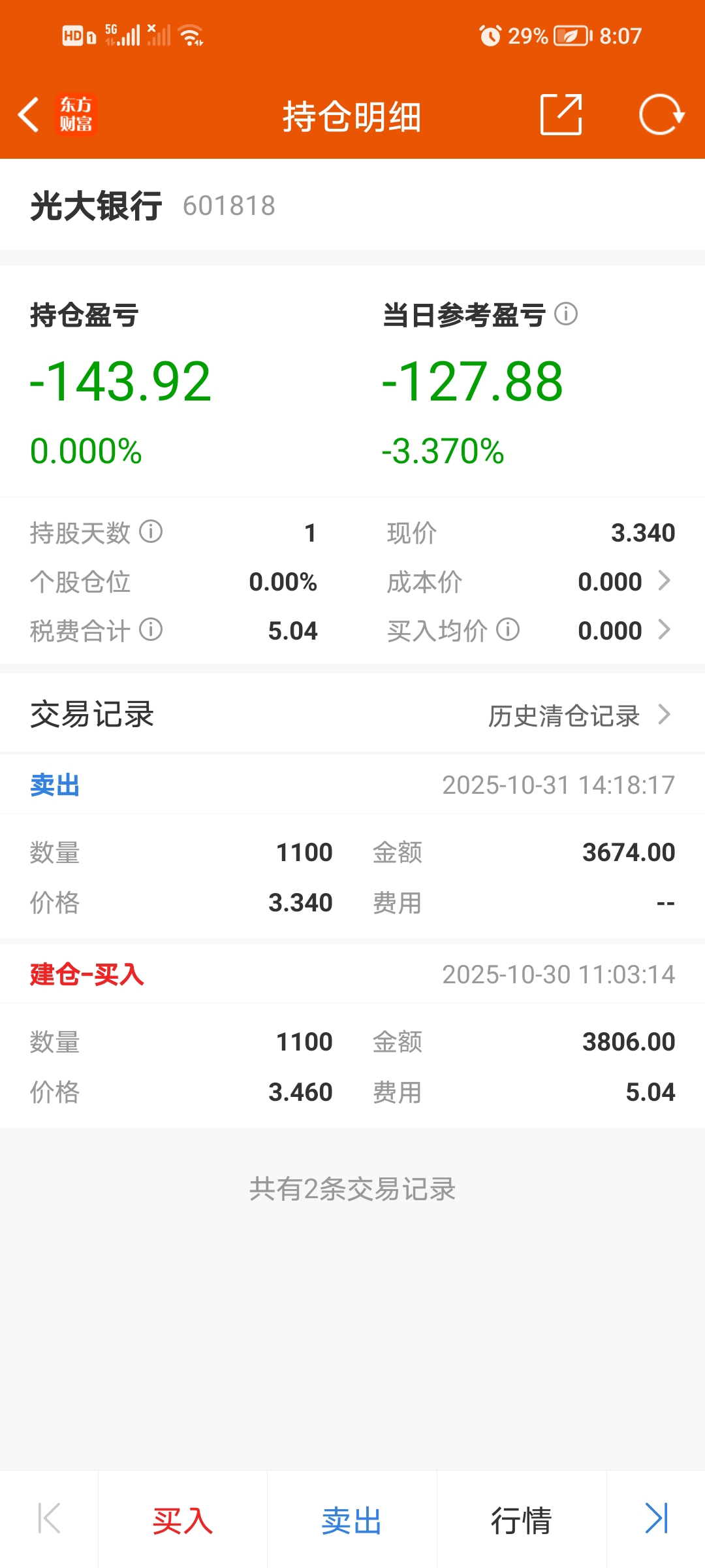 $光大银行(SH601818)$ 昨天买,今天不敢要,太吓人,跑了。