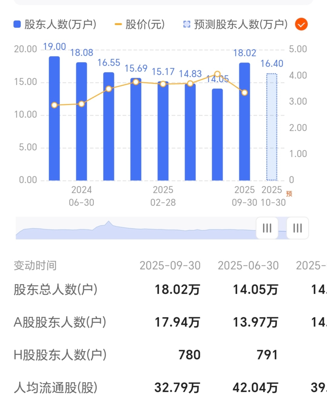 去年9月24之前股东人数19万,上涨后今年6月30股东人数14万,跌了三个月股东
