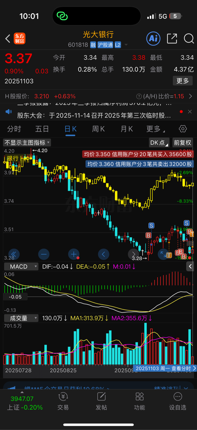 $光大银行(SH601818)$ 没跌也得加3000