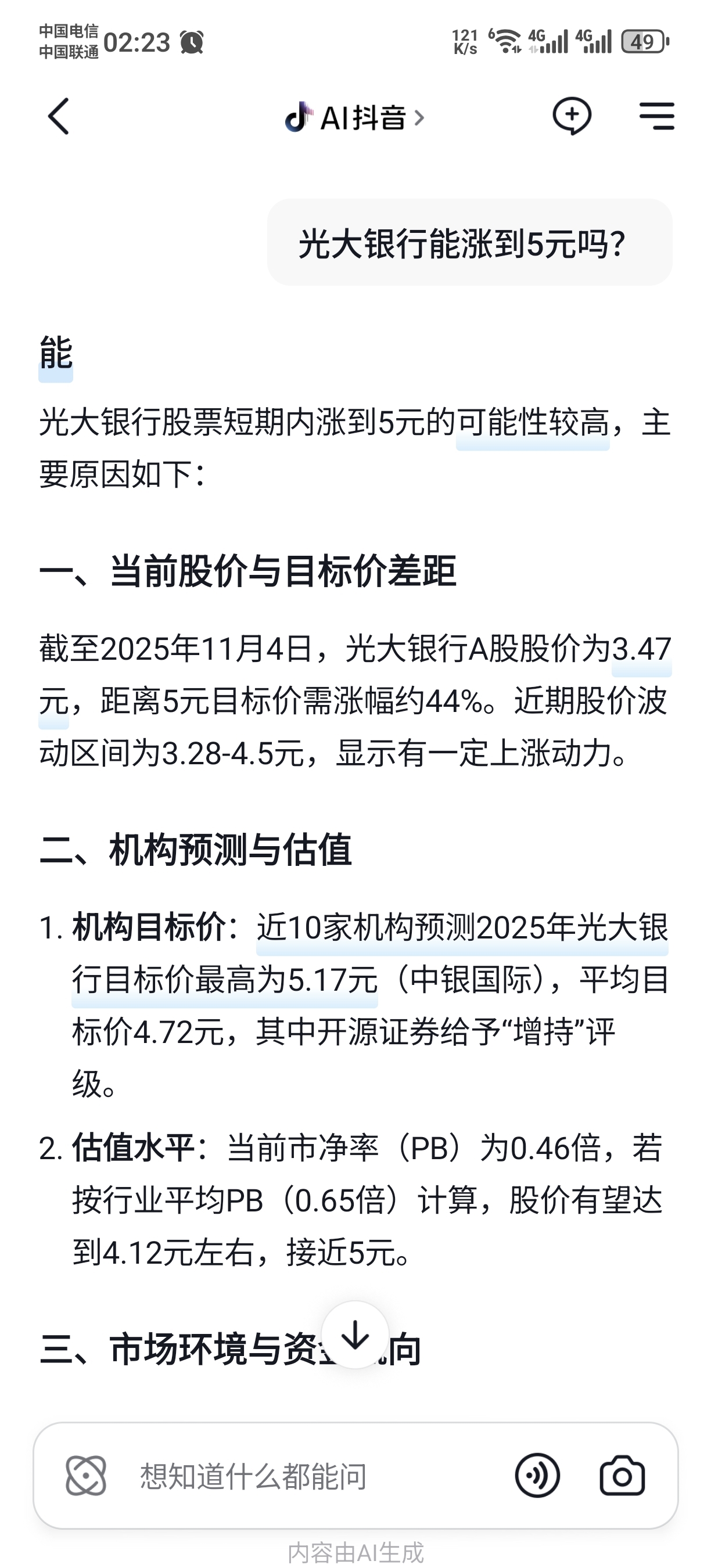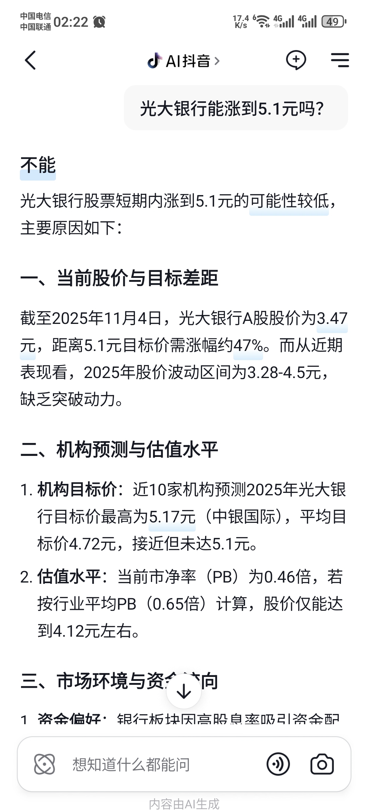 光大银行近期只能涨到5元,可是我想翻倍到净值啊。