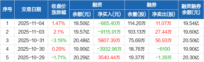 光大银行:融资净偿还665.4万元,融资余额19.5亿元(11-04)