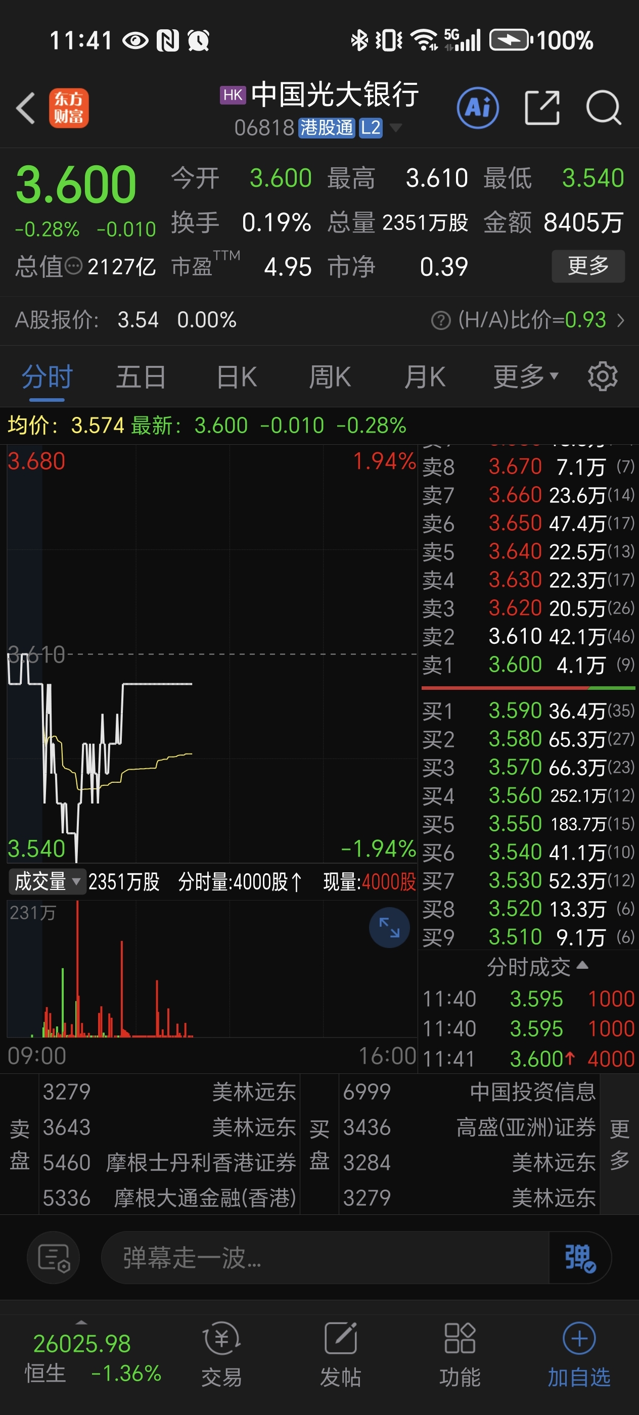 $光大银行(SH601818)$ $中国光大银行(HK|06818)$ 港股光大在玩什么行为艺术?这也叫一字吧。