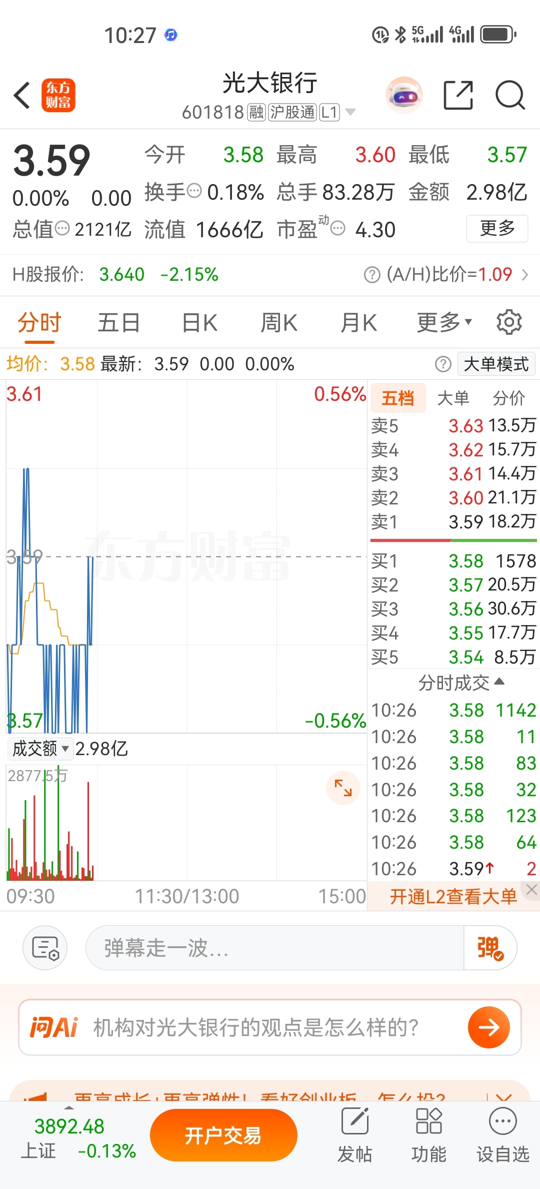 $光大银行(SH601818)$ 这盘面咋象还有机构要加仓呢?