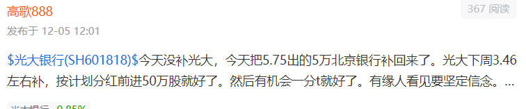 上周说到3.46补10万股。今天3.48补了10万。离计划还差20万股。祝有缘者都大吉大利。现实中多做好事,遇见人生低谷更要做好事。以待天时
