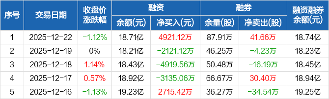 光大银行:融资净买入4921.12万元,融资余额18.71亿元(12-22)
