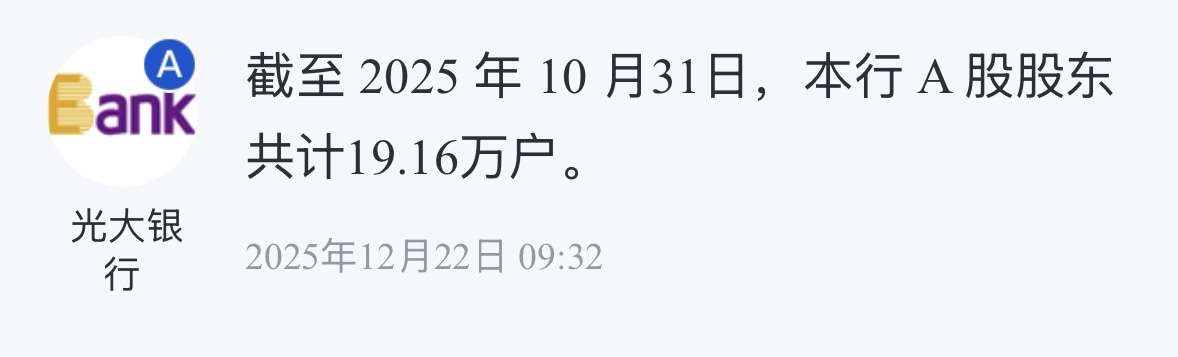 光大银行股东人数10月份暴增一万多至19.16万。光大银行完了!肯定是出什么事了