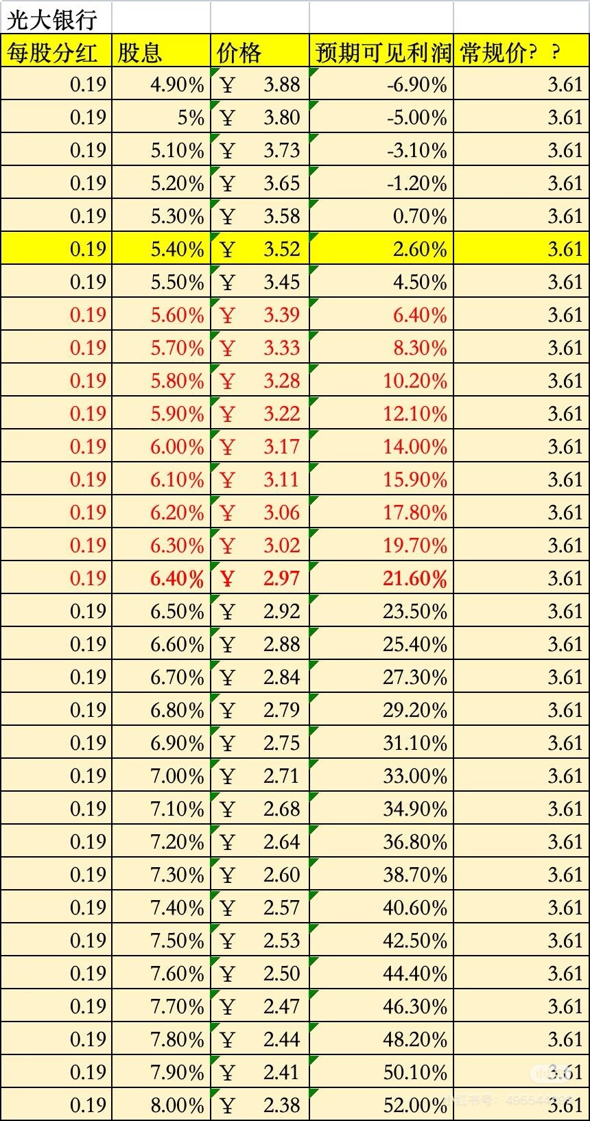 $光大银行(SH601818)$ 若是能跌到 3 块,岂不是 6.4% 了