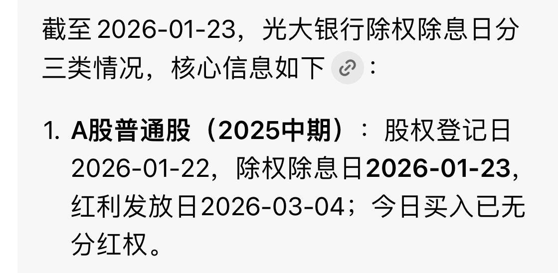 $光大银行(SH601818)$ 豆包说22号是股权登记日,23号是除权日,不知道是不是真的,3月分红