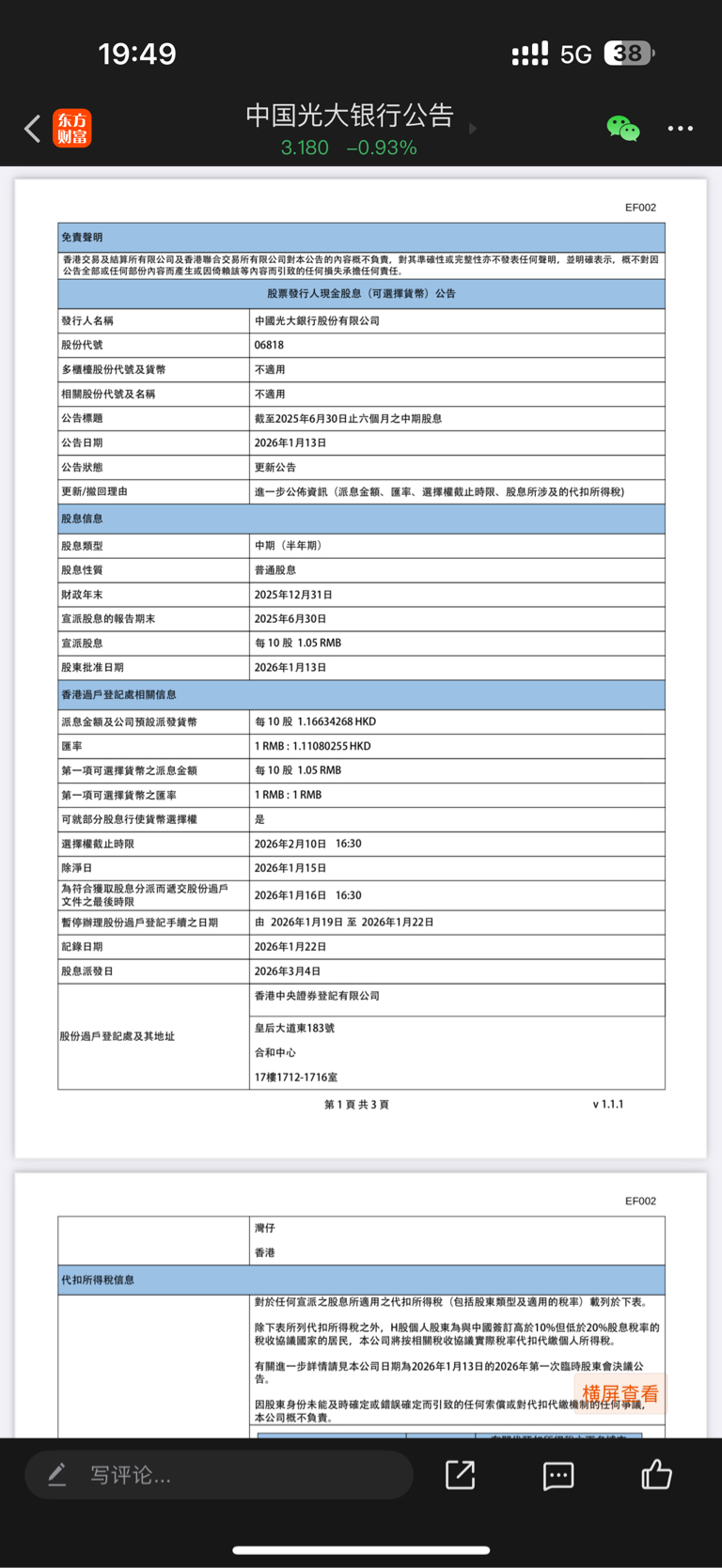 跌点也好,可以多买的股份,反正短期也不会卖,主要担心分红少呢 //@日进积玉得丁春秋 :光大到底什么时候分红,今晚还没有公告
