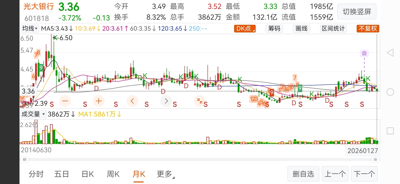 $光大银行(SH601818)$ 这位置买到就是赚到。