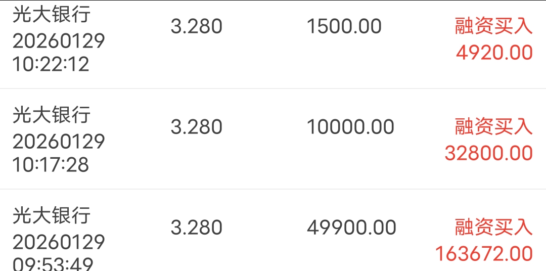 $光大银行(SH601818)$ 融资买入6w股,20wRMB