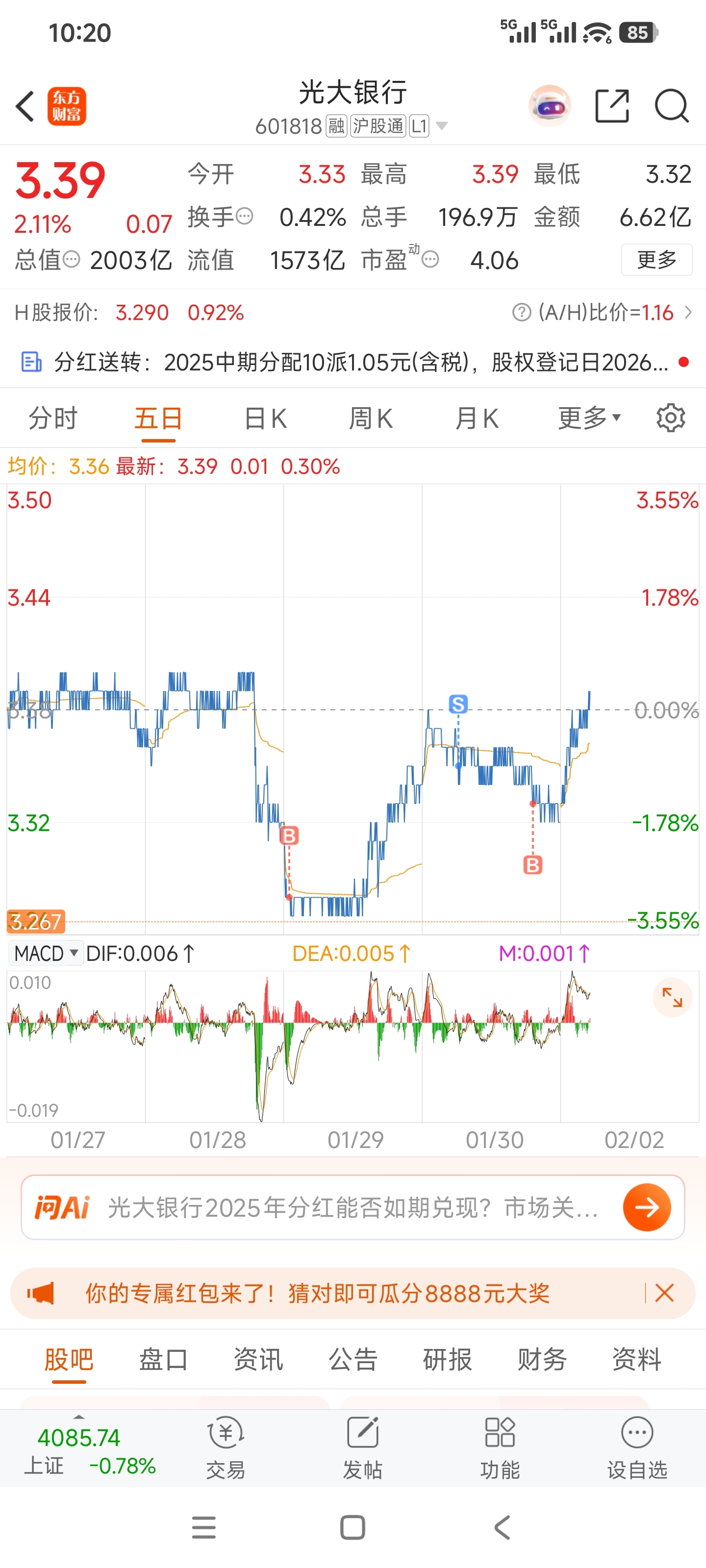 $光大银行(SH601818)$ 能涨停吗