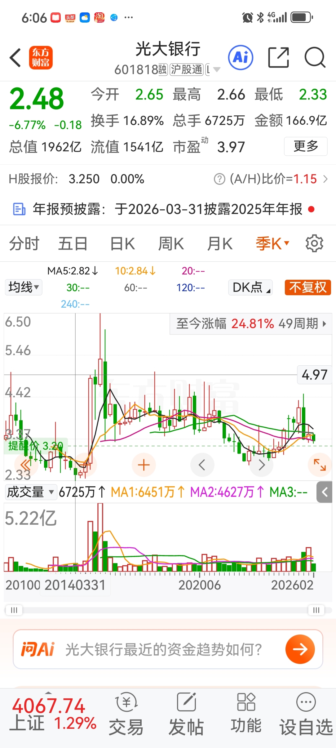 有悲观/唱空者称332分还要跌一块?!光大银行史上最低价233分出现于2014年