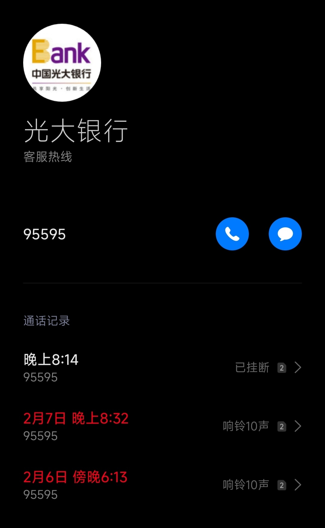 $光大银行(SH601818)$ 有见过晚上银行打电话吗?