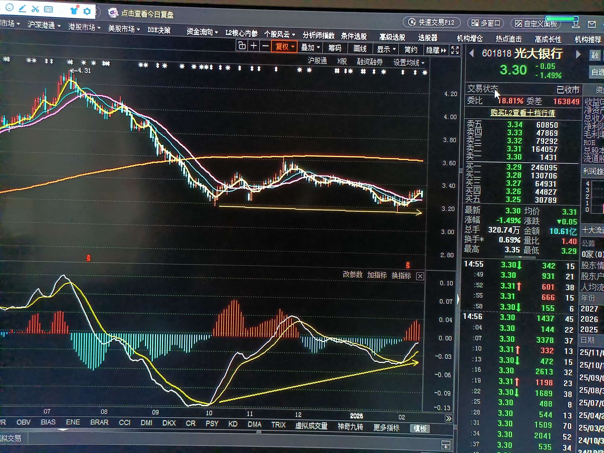 $光大银行(SH601818)$ 日线级别底背离 macd 如图