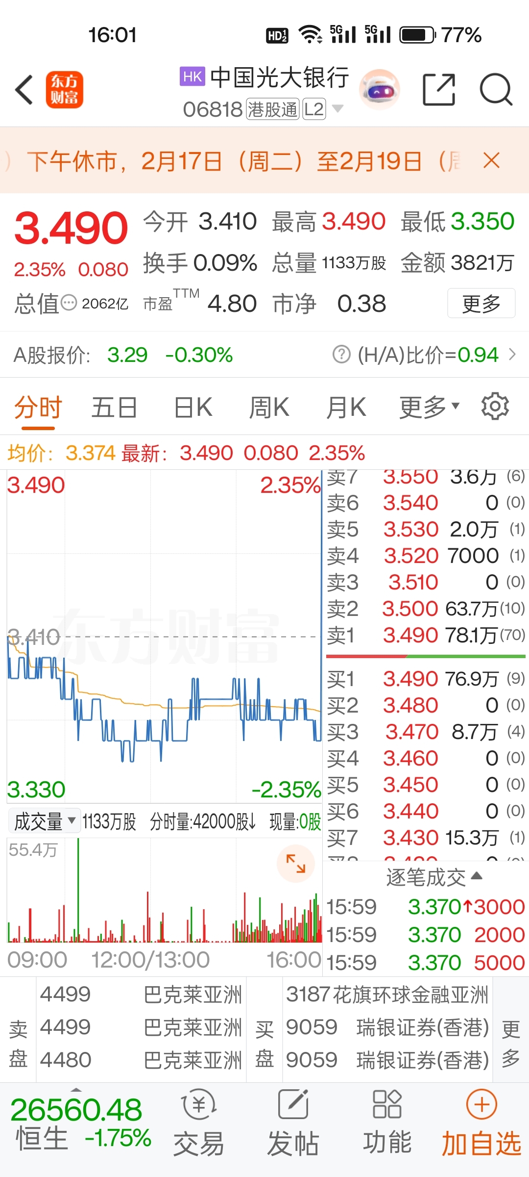 $光大银行(SH601818)$ 哼,什么价格你们都卖,这下好了,被人抢了