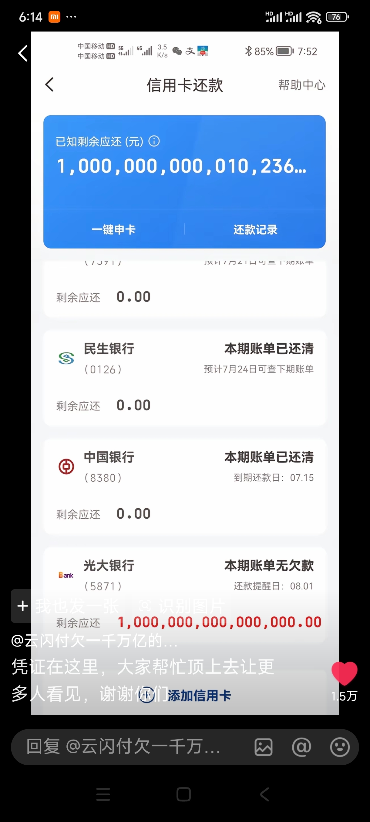光大银行明显市值低估了,有一千多万亿的放贷资金未添加到财务报表里去。