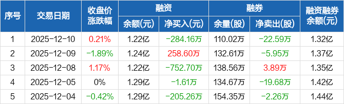 沪农商行:融资净偿还284.16万元,融资余额1.22亿元(12-10)