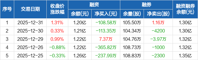 沪农商行:融资净偿还108.58万元,融资余额1.2亿元(12-31)