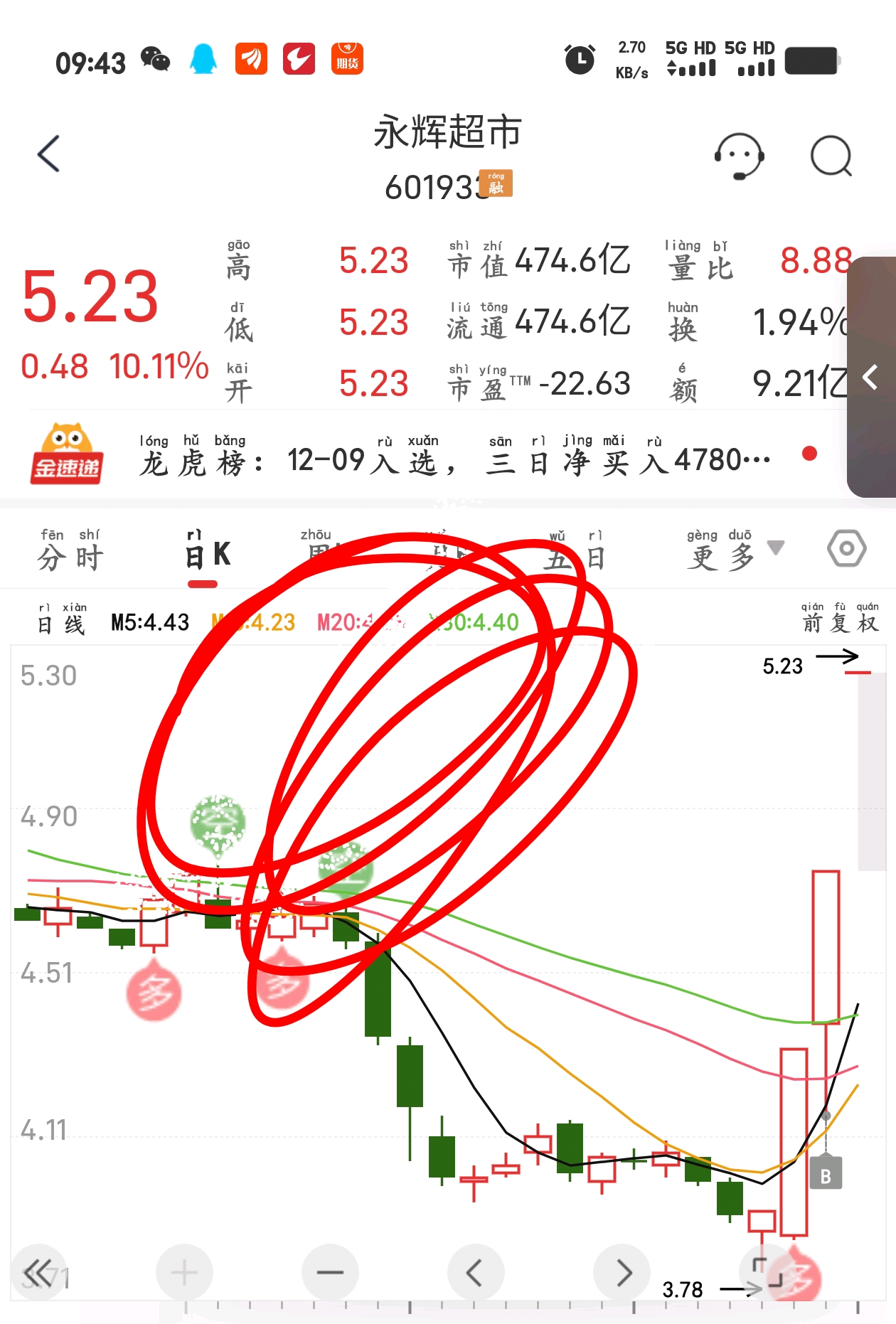 完了完了完了,卖飞了,为什么我会买那个永辉超市呢?市值这么大,根本翻不了倍