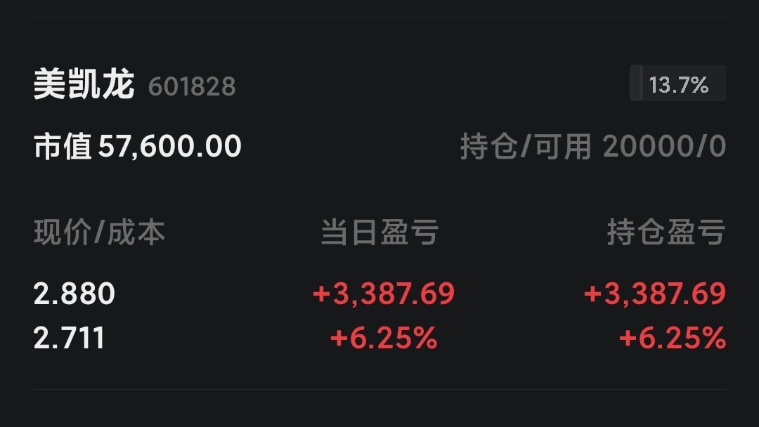 今天低开不敢入手,看冲就跟,反调又套了不敢再补,后面震荡冲上涨停也不敢追,眼看涨