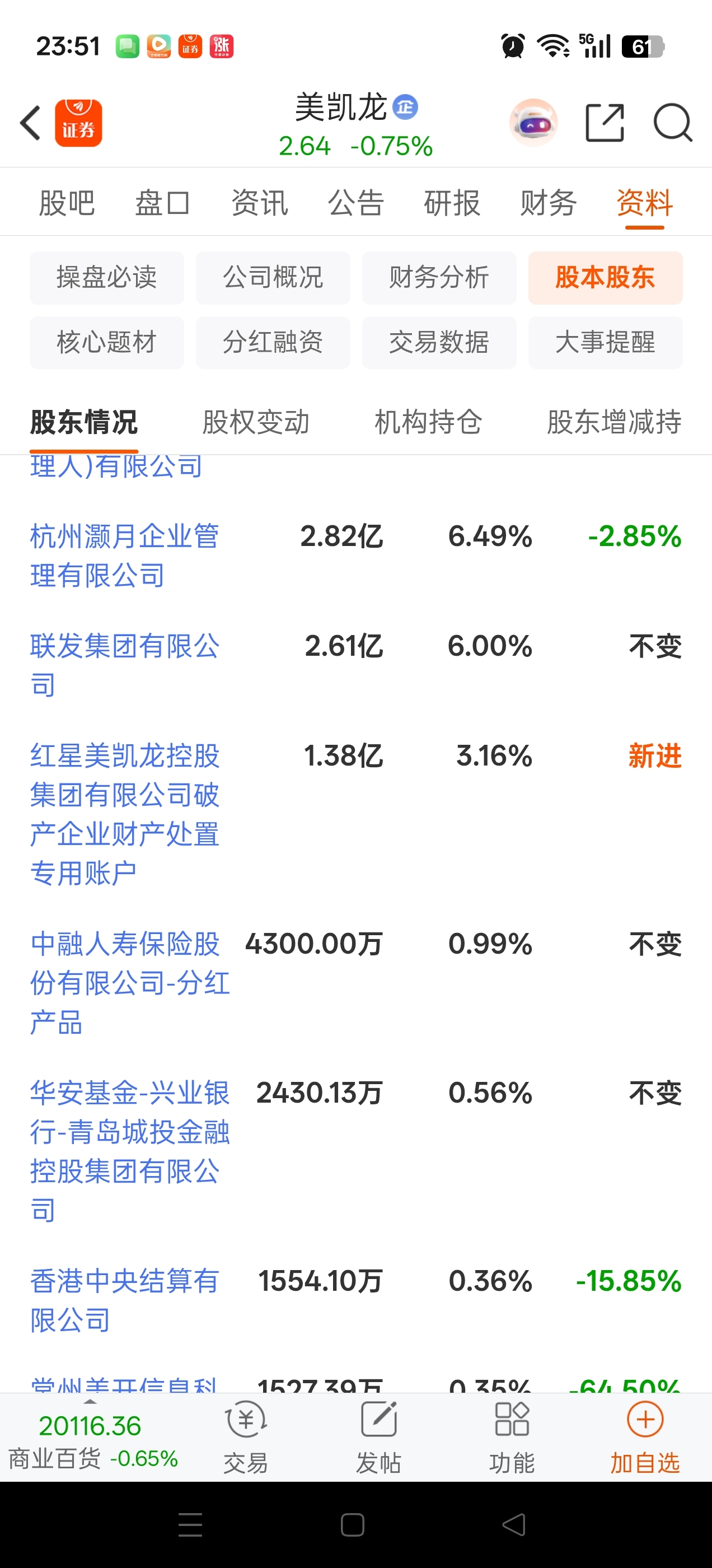 $美凯龙(SH601828)$ 牛逼,红星美凯龙新进的股东名字,这就是奔着退市去的。