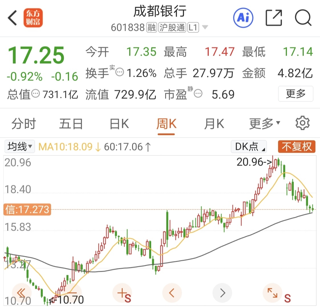 用时1个季度,从20.96元跌到17.04元,跌了约4元。