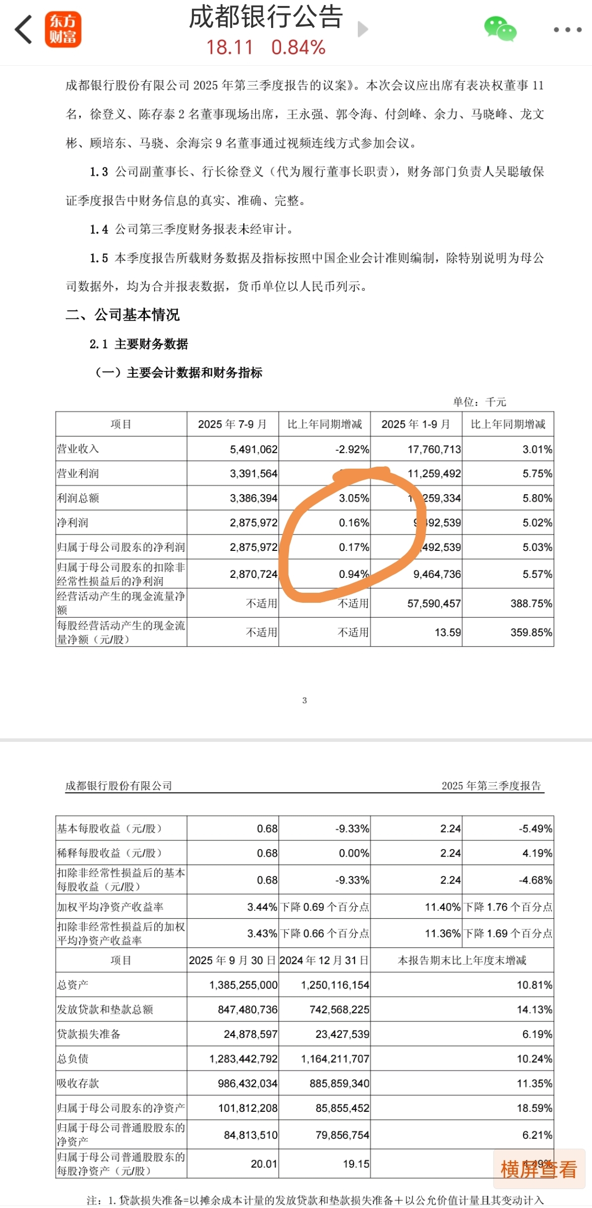$成都银行(SH601838)$ 三季度净利润只增长0.16%,四季度要负?