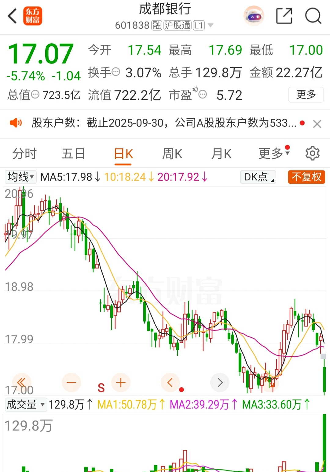 沪A指数创4016.33新高!成都银行股价放量创新低!!