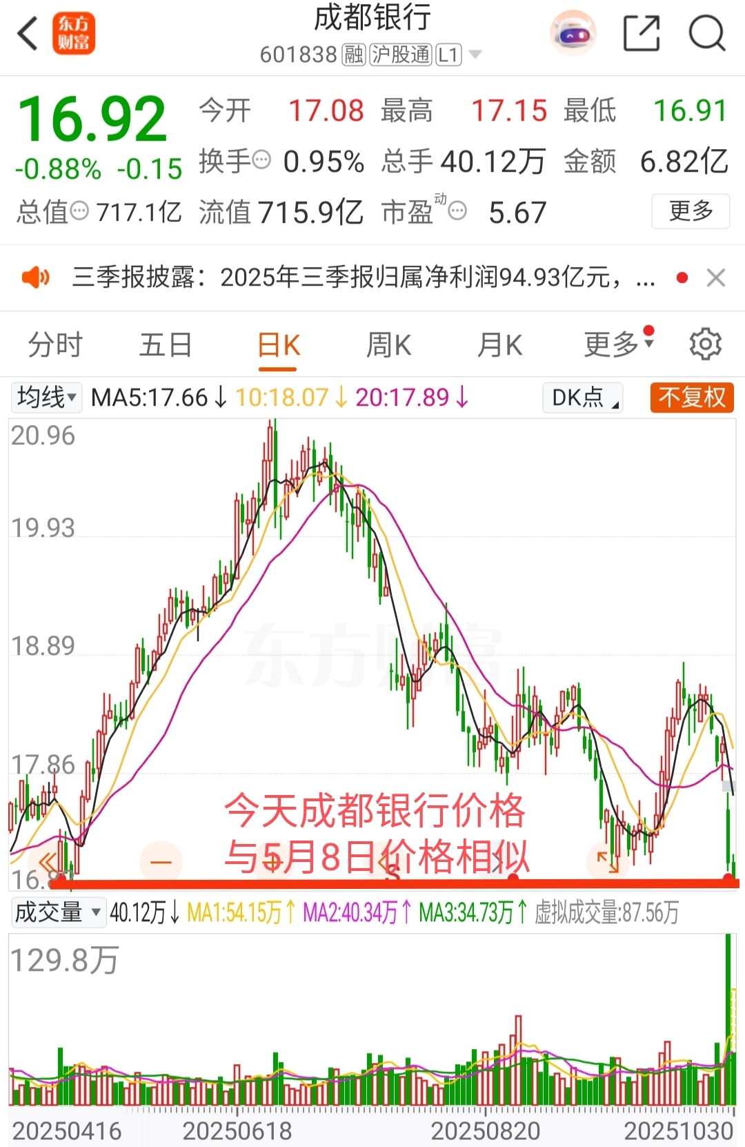 上证指数5月8日3318点!成都银行今天价格与5月8日价格相同!!至今天持有成都