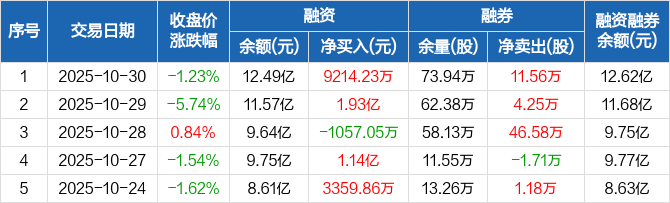 成都银行:融资余额12.49亿元,创历史新高(10-30)