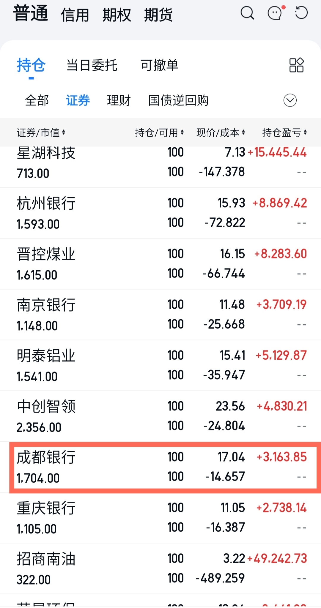 持有成都银行几天,挣了些小钱卖出了!天大武功唯快不败!!