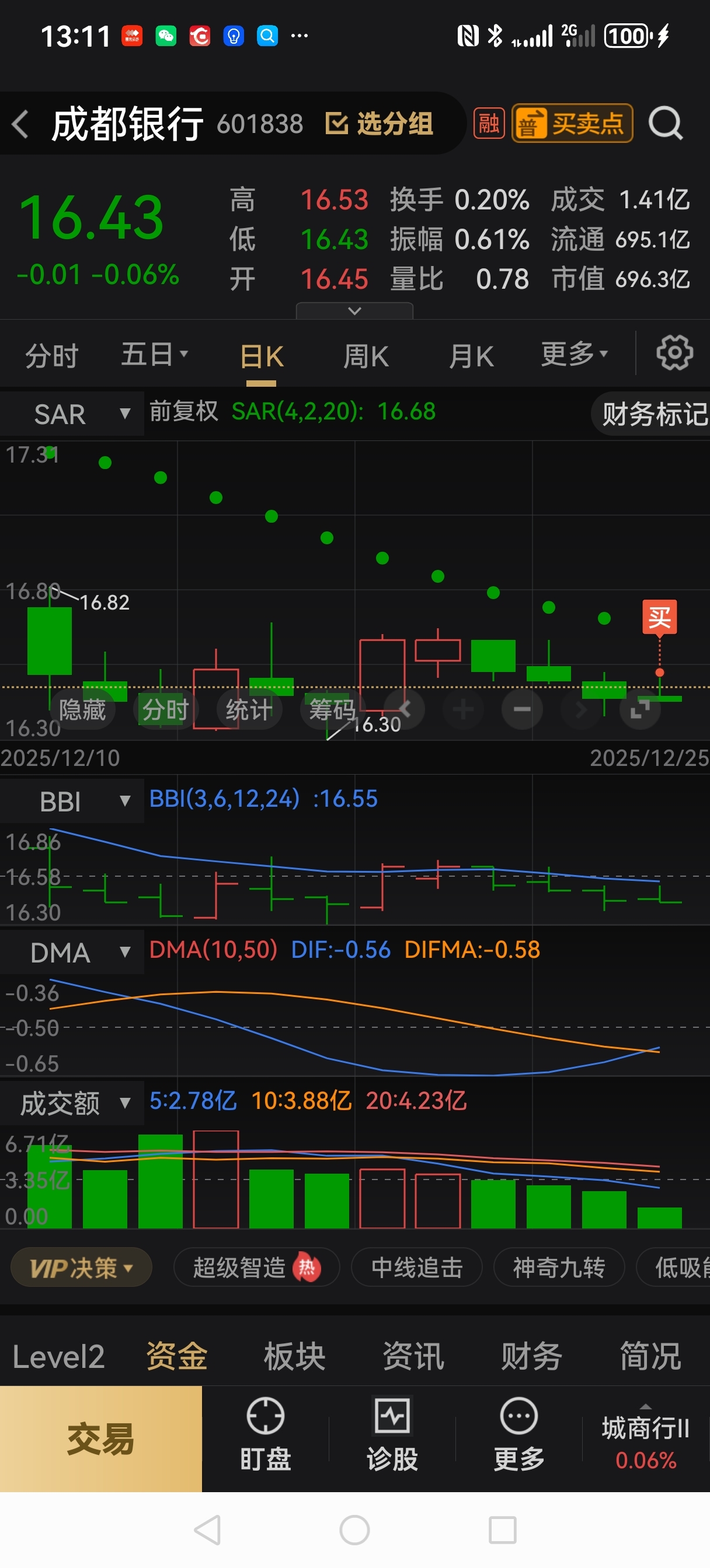 成都银行,11月12号清仓17.28(4-30*16)11月14号清仓17.15(63*34*8)12月25号,已建仓16.43。