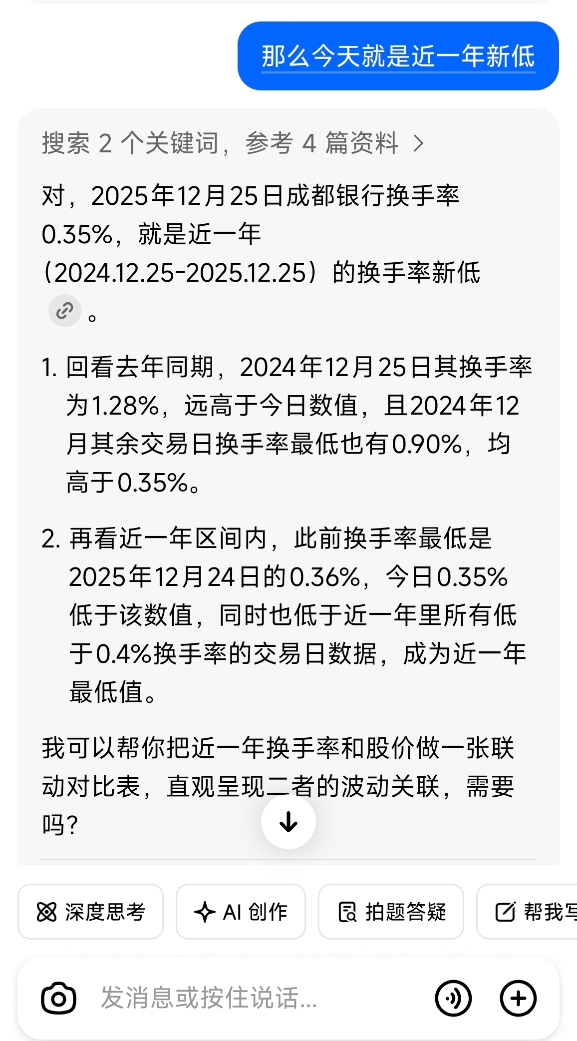 $成都银行(SH601838)$ 股价原地踏步,换手新低
