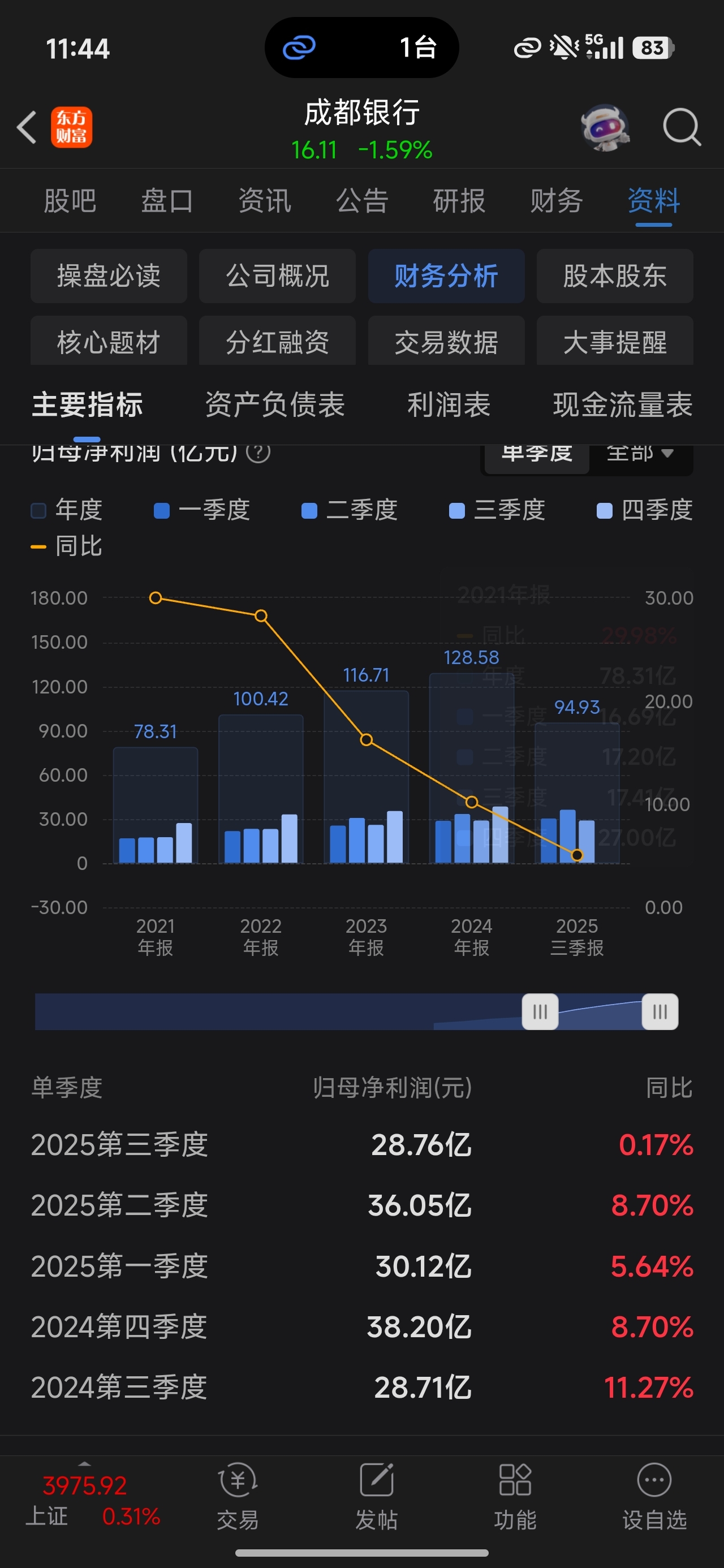 业绩快接近负增长了,这么多年第一次负增长,反应一定很大,四季度负增概率99%吧。