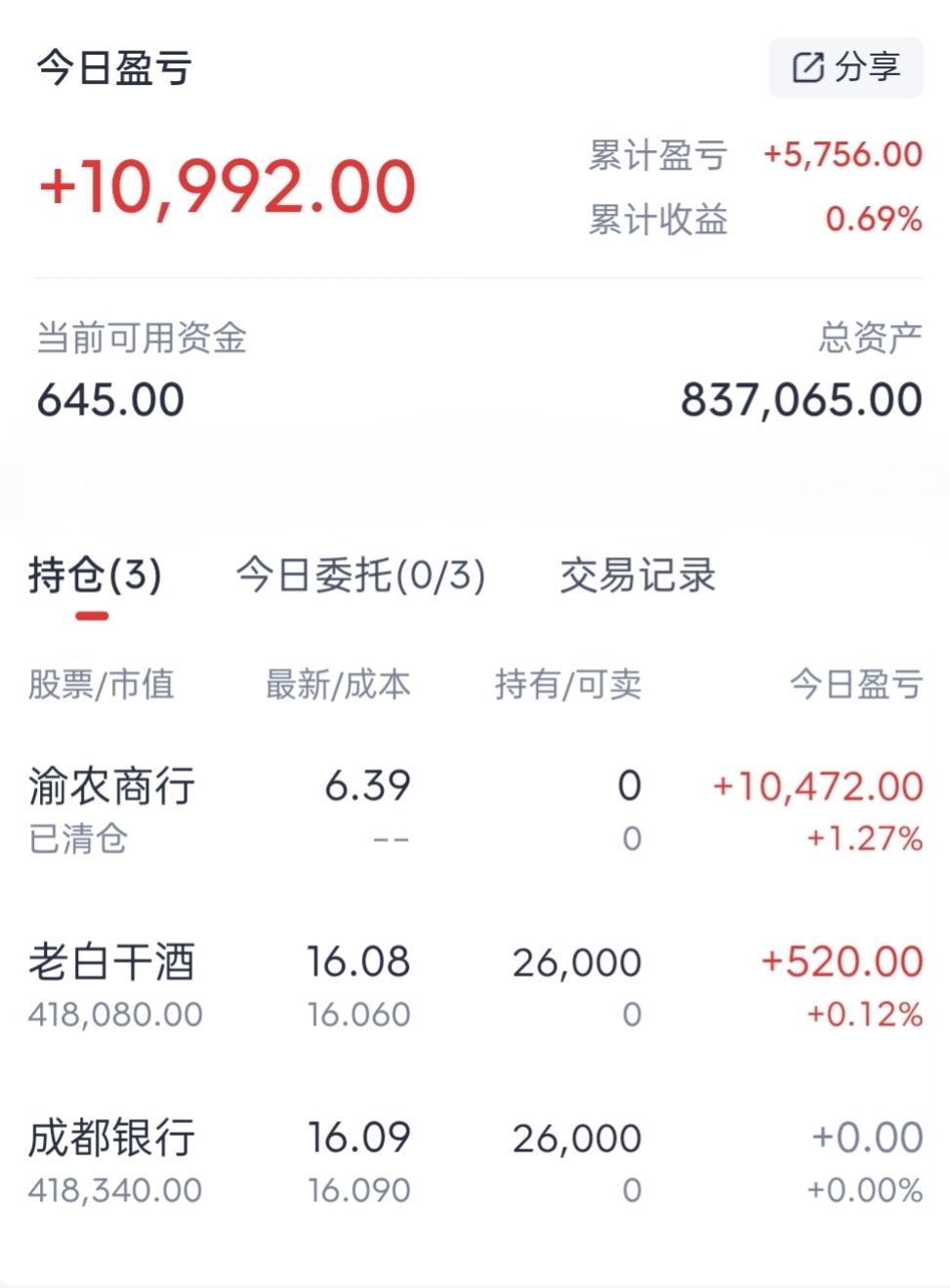 $成都银行(SH601838)$ 成都银行看出来了,这拉稀股收盘百分百红一点点来打破8连绿,然后下个交易日高开,也就是我卖出去的时候,高开后极速下滑在来几个连绿+一次暴泄,到13元左右开始正常