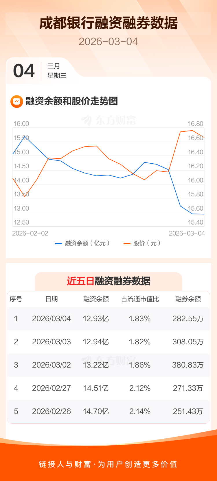 交易所最新数据显示,成都银行于2026年3月4日获融资买入4720.37万元,融资偿还4903.94万元,当日融资净偿还183.57万元。目前,该股融资余额12.93亿,占流通市值比例为1.83%。