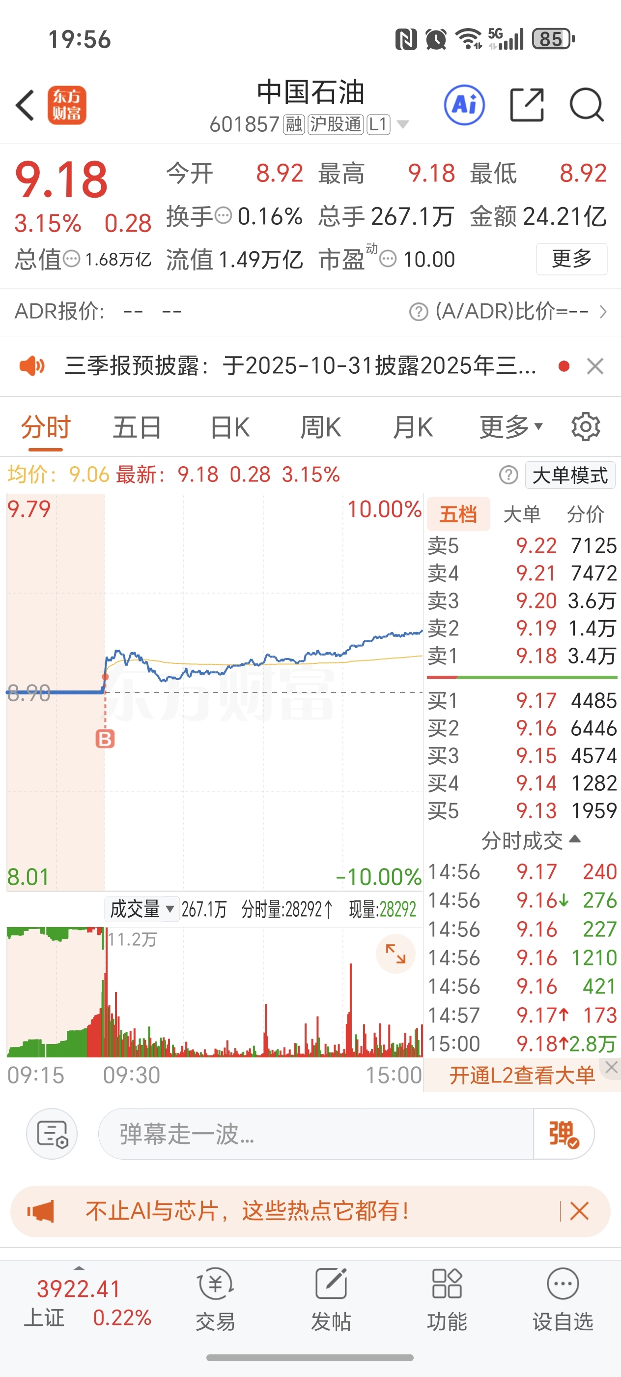 $中国石油(SH601857)$ 都在唱多?我唱,明天再见